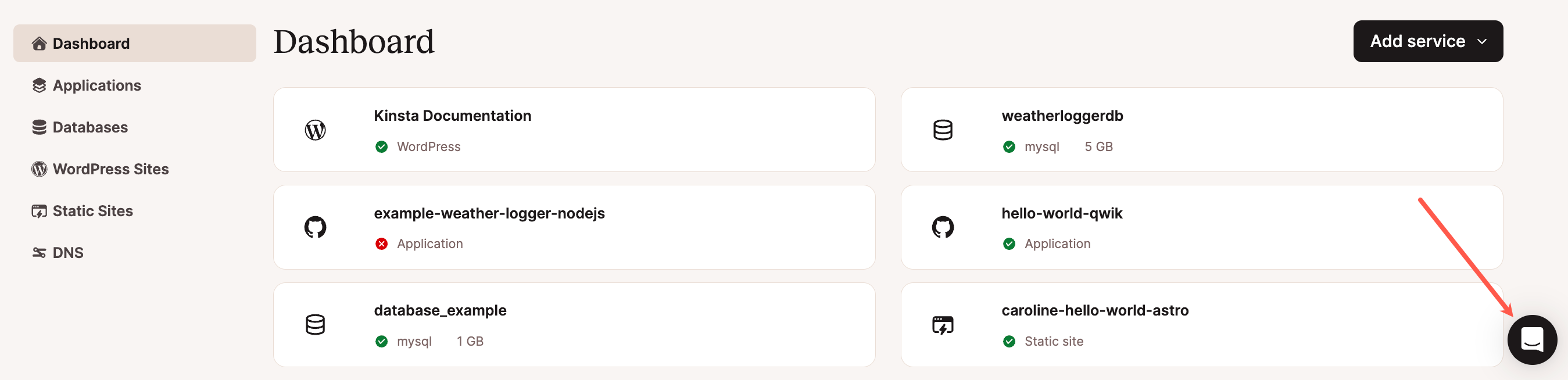 To open a new support chat or ticket, log in to Sevalla and click the chat icon in the lower right corner.
